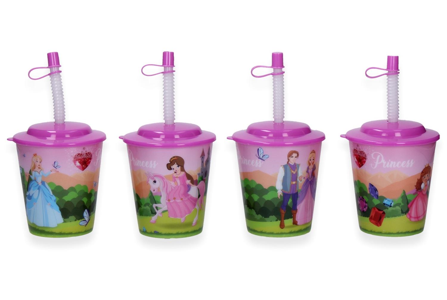 Beker met deksel met rietje, prinses. Deze set bestaat uit een beker, deksel en een rietje. De inhoud van de beker is 240 ml. Leuk voor bij feestjes.