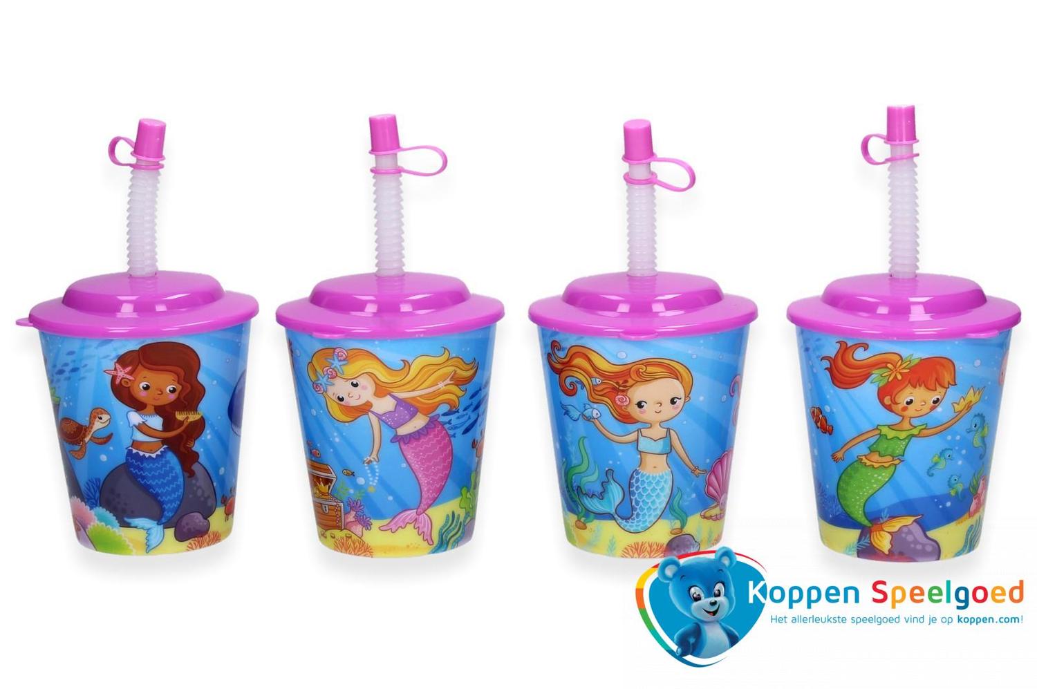 Deze drinkbekers hebben een print in het thema van zeemeerminnen in een onderwaterlandschap met allerlei zeedieren.