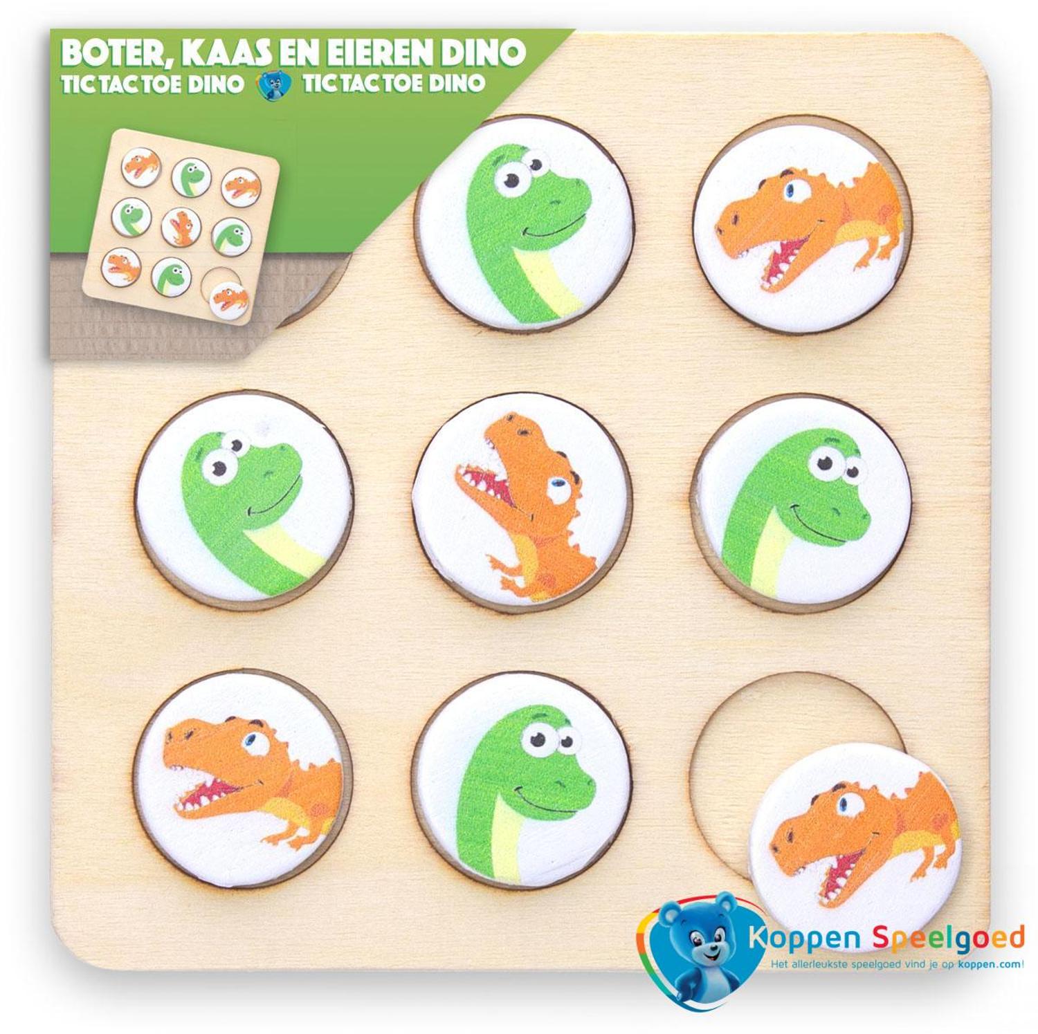 Boter, kaas en eieren-spel met speelfiguurtjes van dino's.