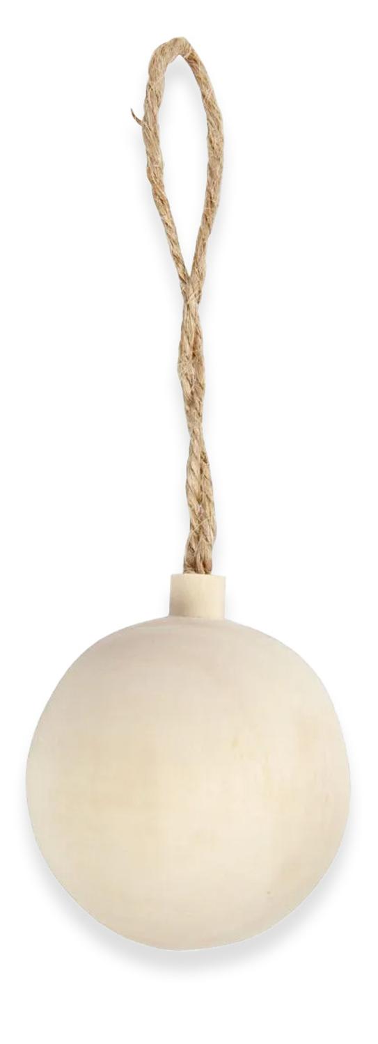 Een mooie Kerstbal van hout om zelf verder af te werken. Of laat hem mooi naturel, dat kan ook! Voorzien van ophangkoord.