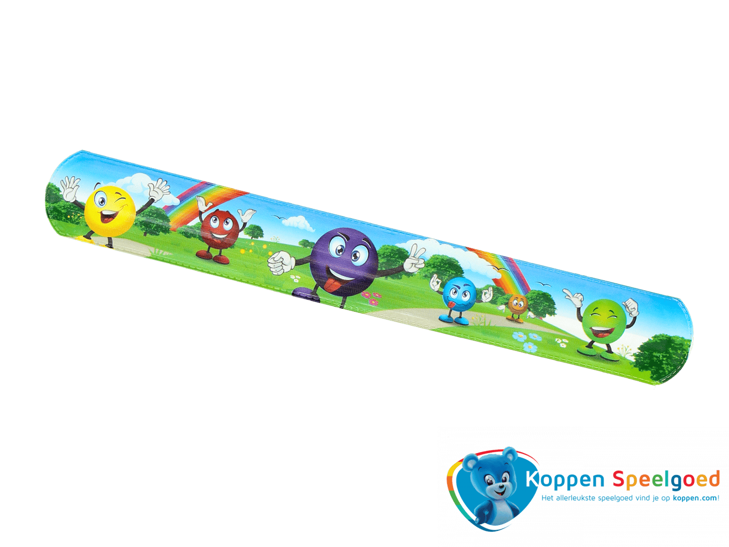 Klaparmband smile. Een klaparmband met een smile print. Sla de rechte armband tegen je pols en hij klapt om je arm. Geschikt voor kinderen vanaf drie jaar.