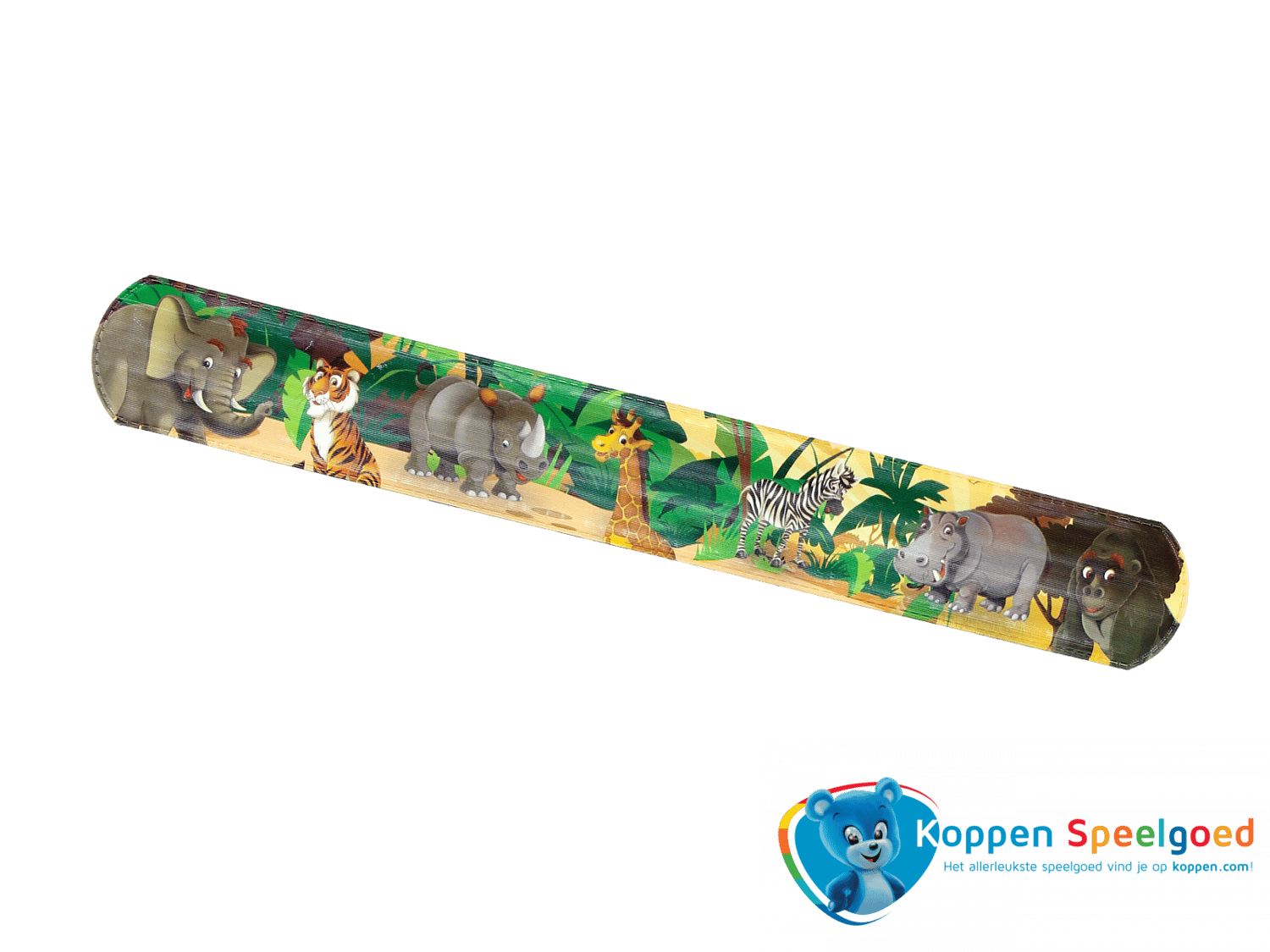 Klaparmband wilde dieren. Een klaparmband met een wilde dierenprint. Sla de rechte armband tegen je pols en hij klapt om je arm. Geschikt voor kinderen vanaf drie jaar. Leuk cadeau voor in de grabbelton.
