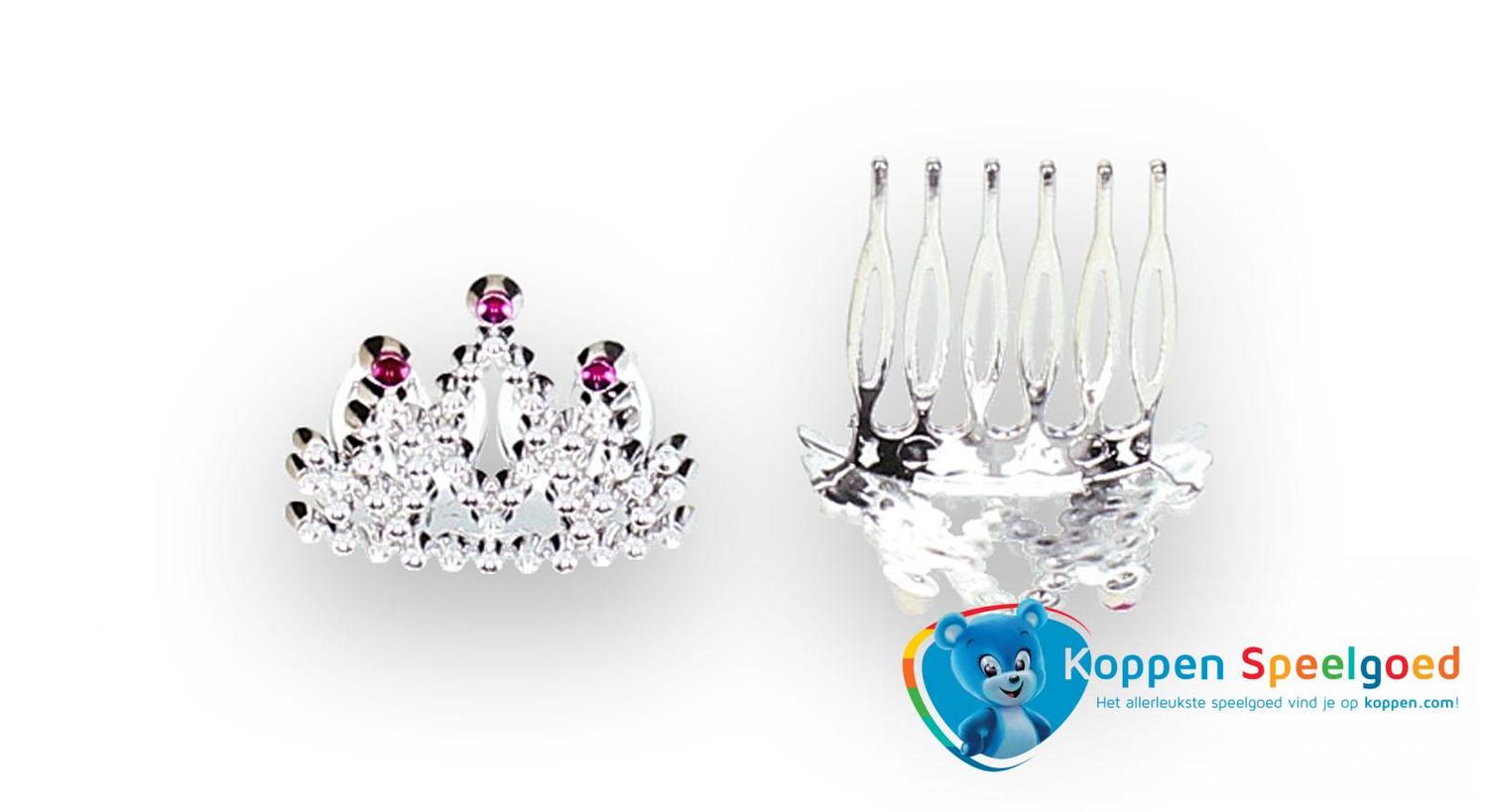 Kroontje prinses klein. Is makkelijk in je haren te bevestigen. Het kroontje is 4 x 3 cm. Leuk voor de kleine prinses.