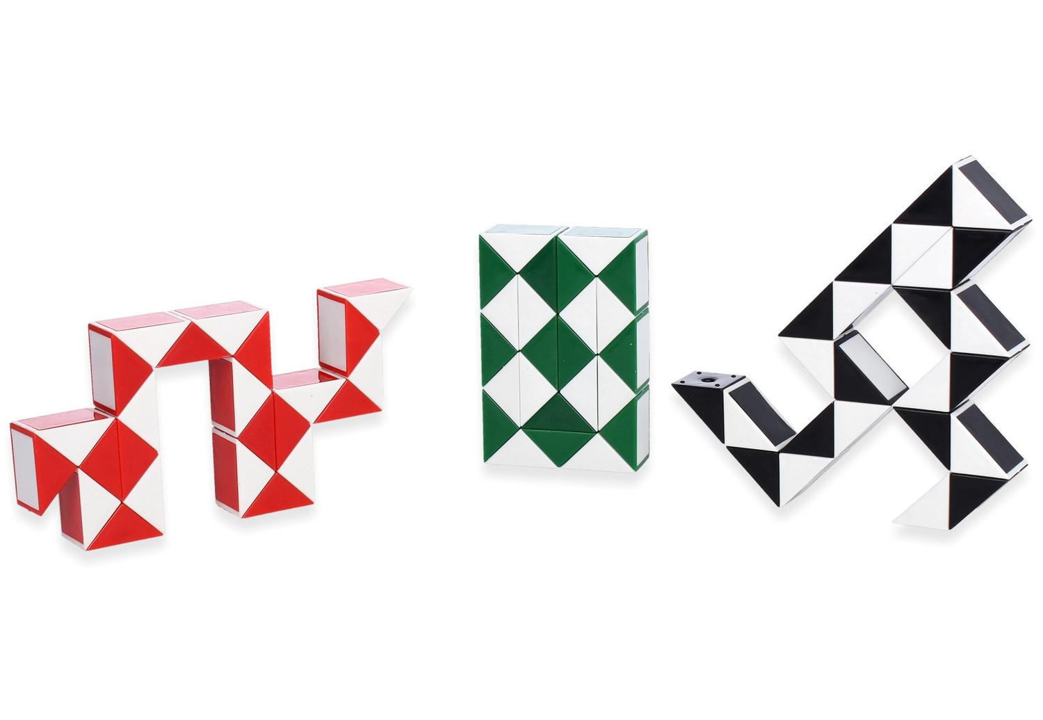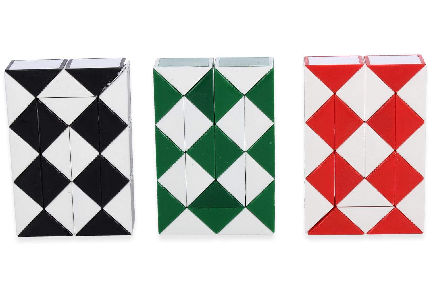 Magische rechthoek. Met deze magische rechthoek maak je verschillende vormen. Draai de blokjes zo om zodat het een rechthoek vormt en probeer verschillende vormen te maken, zoals bijvoorbeeld een hond. Het is een sport en spel om dit sneller te doen dan je vriendjes. Er zijn verschillende kleuren en deze worden door elkaar geleverd.