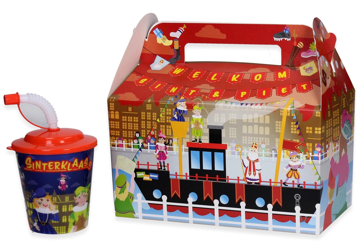 De set bestaat uit één menubox en één drinkbeker. Helemaal in het thema van Sinterklaas. Met deze menubox set maak je zeker indruk op de kleintjes.