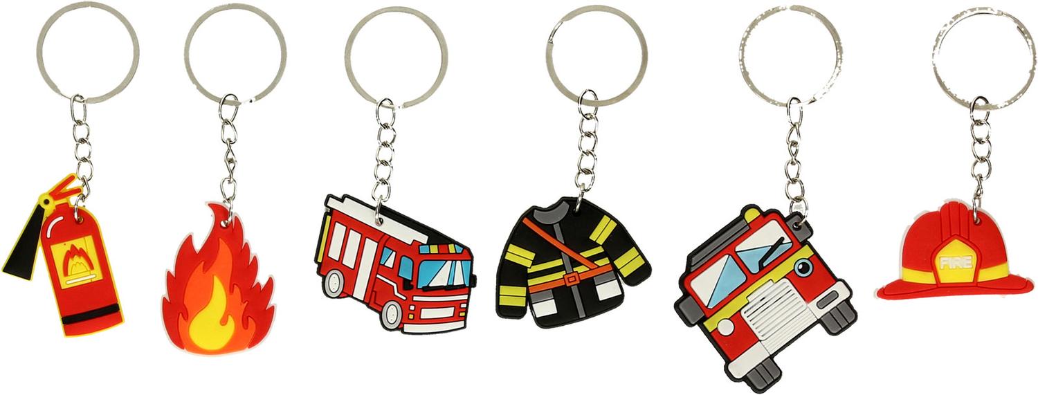 Kleurrijke sleutelhanger in het thema van dingen die met de brandweer te maken hebben.