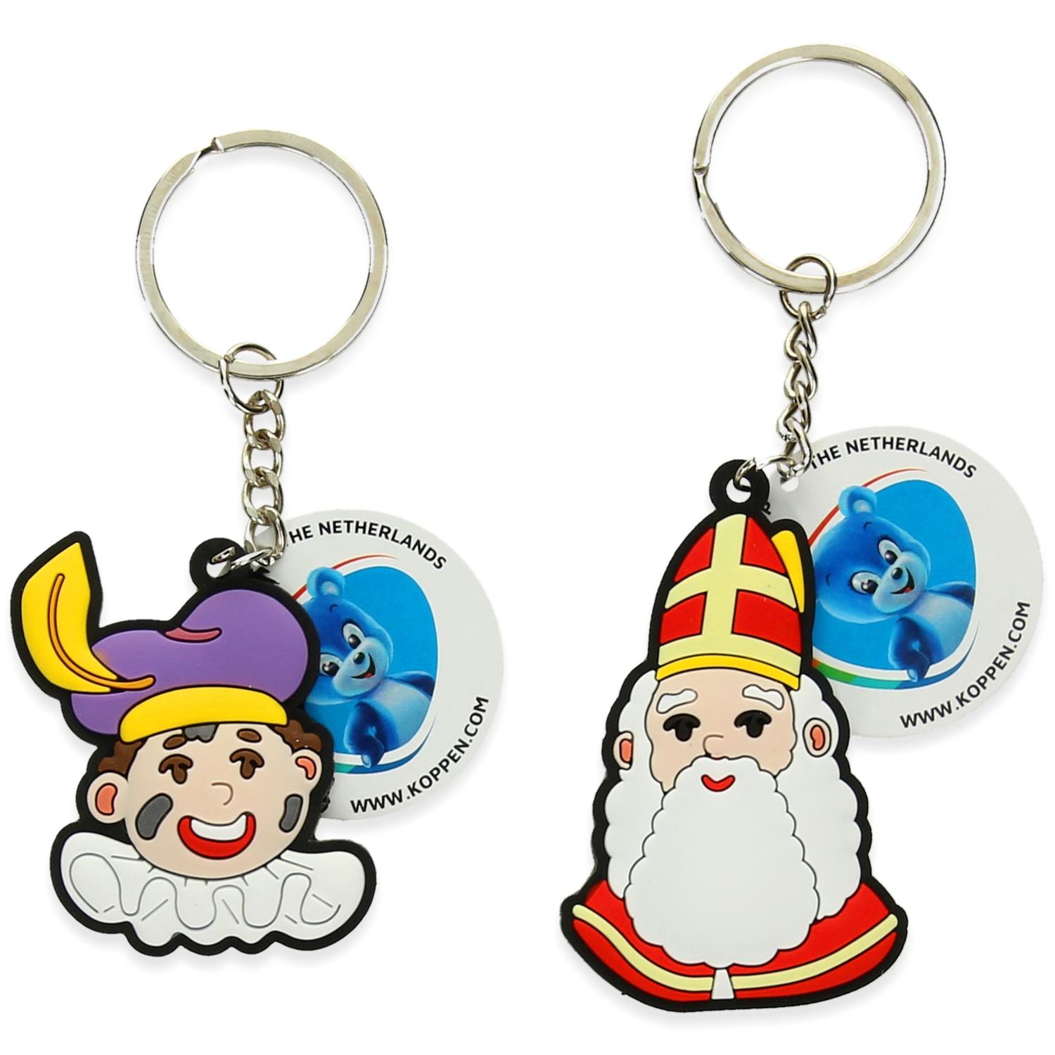 Deze mooie sleutelhangers zijn gemaakt van flexibel kunststof. Er is een Sinterklaas en een Piet.