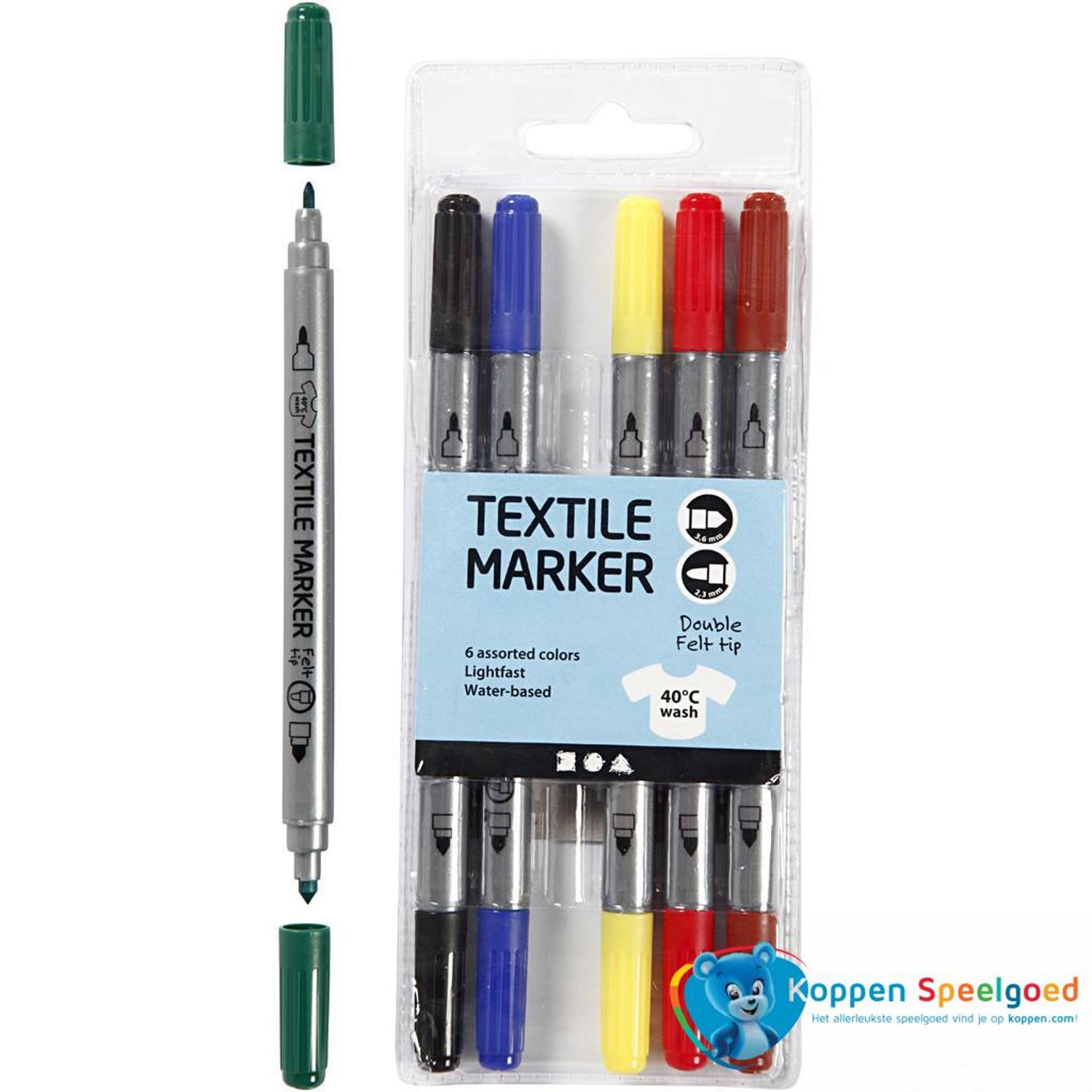 Goede kwaliteit, sterke, permanente textielstiften. De stifften hebben aan beide uiteindes een punt met dop. De verschillende punten hebben een lijndikte van 2,3 en 3,6 mm.