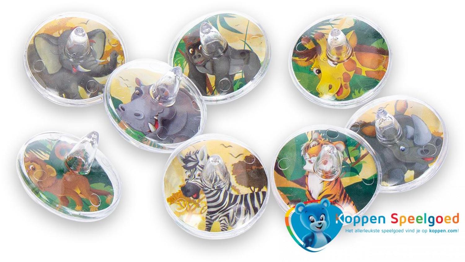 Een transparante tol met een afbeelding van binnen in wilde dieren thema.